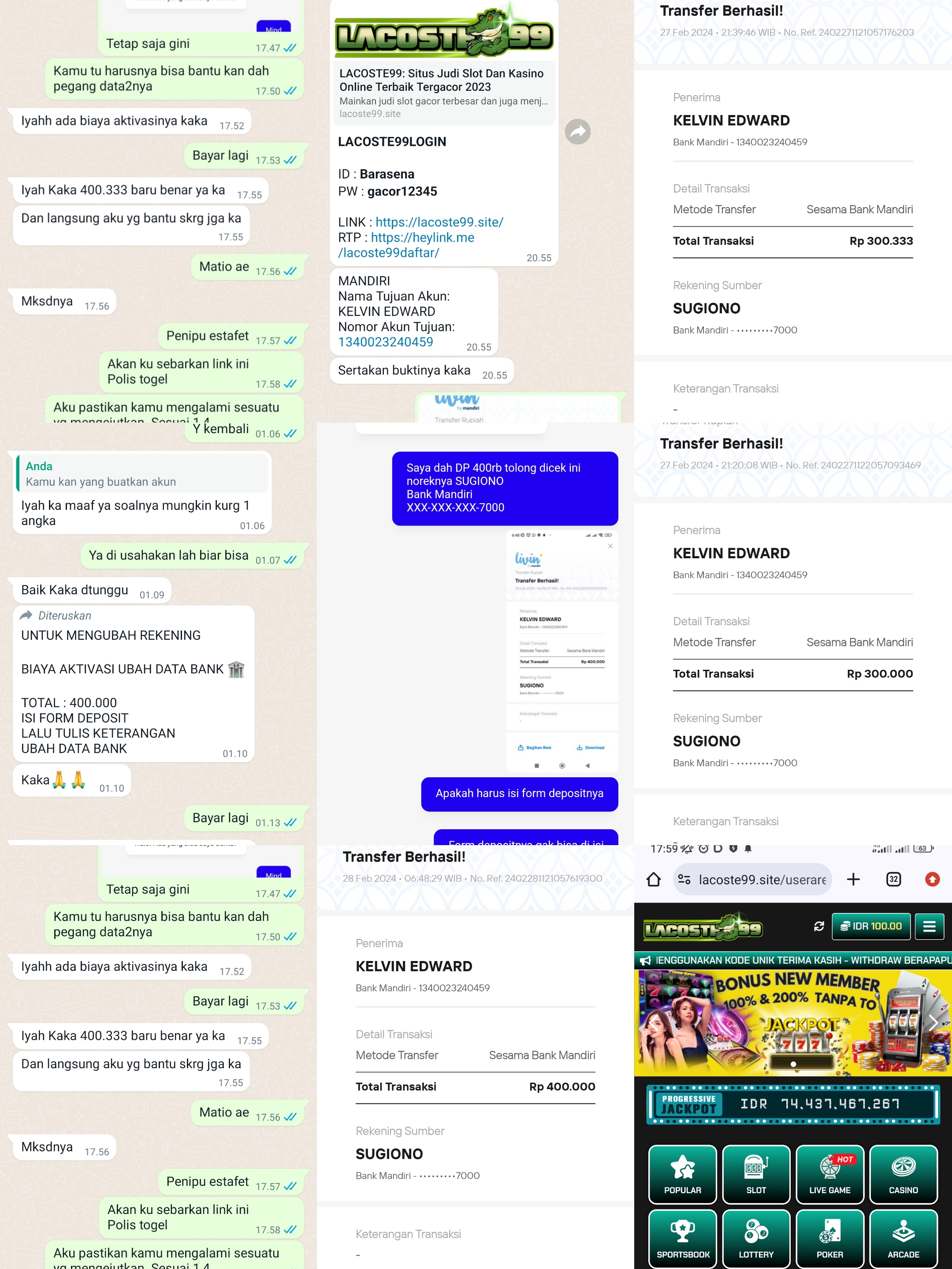 1. kasih bukti chat dan transaksi ,usahakan sebelum depo chat dengan admin,ada BO depo menggunakan kode unik
