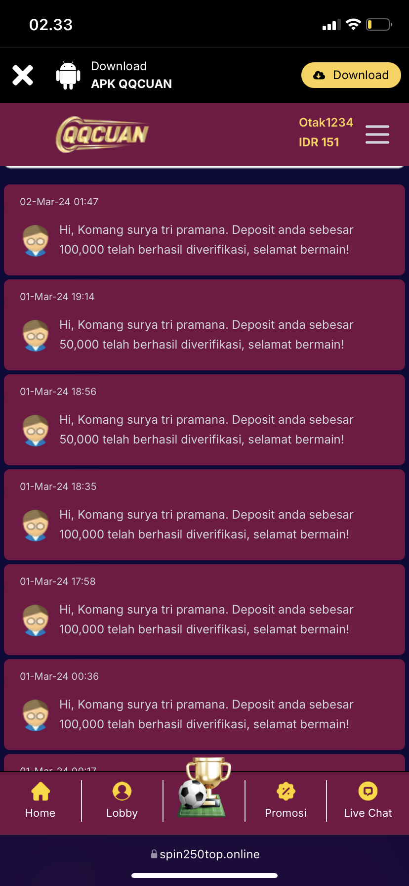 Sehari saya bisa deposit 5kali sampek 10kali bang , deposit berulang kali bang, saldo ga pernah naik , dikasi rtp ga ngaruh sama sekali, di live cht malah nyuruh deposit mulu , beli spin paling banyak dapat dibawah 10ribu dengan bet 4ratus rupiah , kadang2 kaga nyimpen kali sama sekali .. pas saldo mulai naik gamenya kluar sendiri , bukak game yg tadi saldo disedot parah , mau jungkir balik , mau sambil tidur , sambil berak .. semua skil sudah dikluarkan tetap zonk dan dirampok parah bang