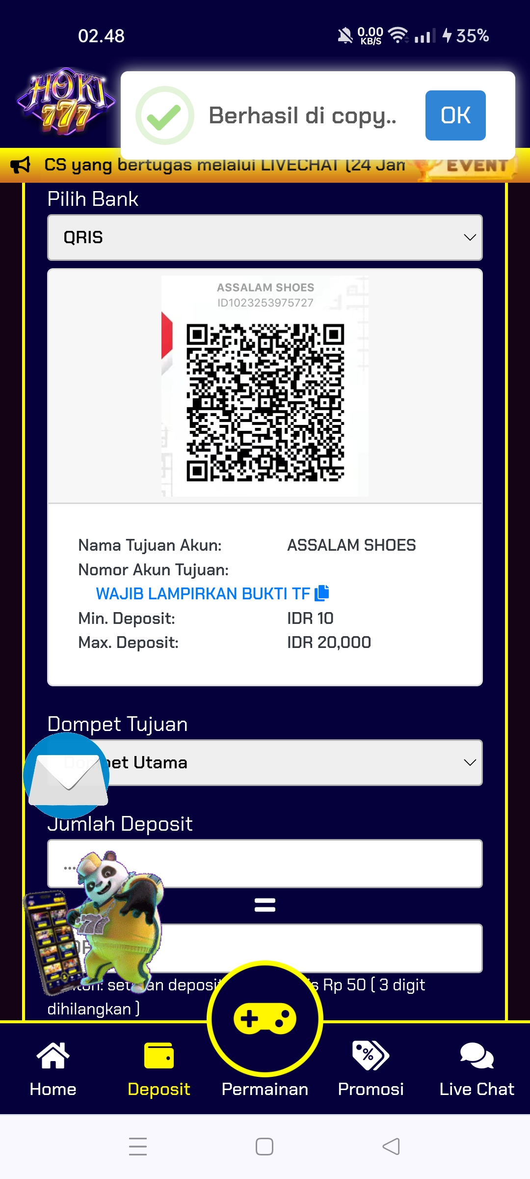 1. jaman sekarang Qris bukan jaminan dana masuk sob,makanya BO minta waktu estimasi sampai 3X24 jam,secepatnya jika dana masuk rekening tujuan,deposit akan di proses