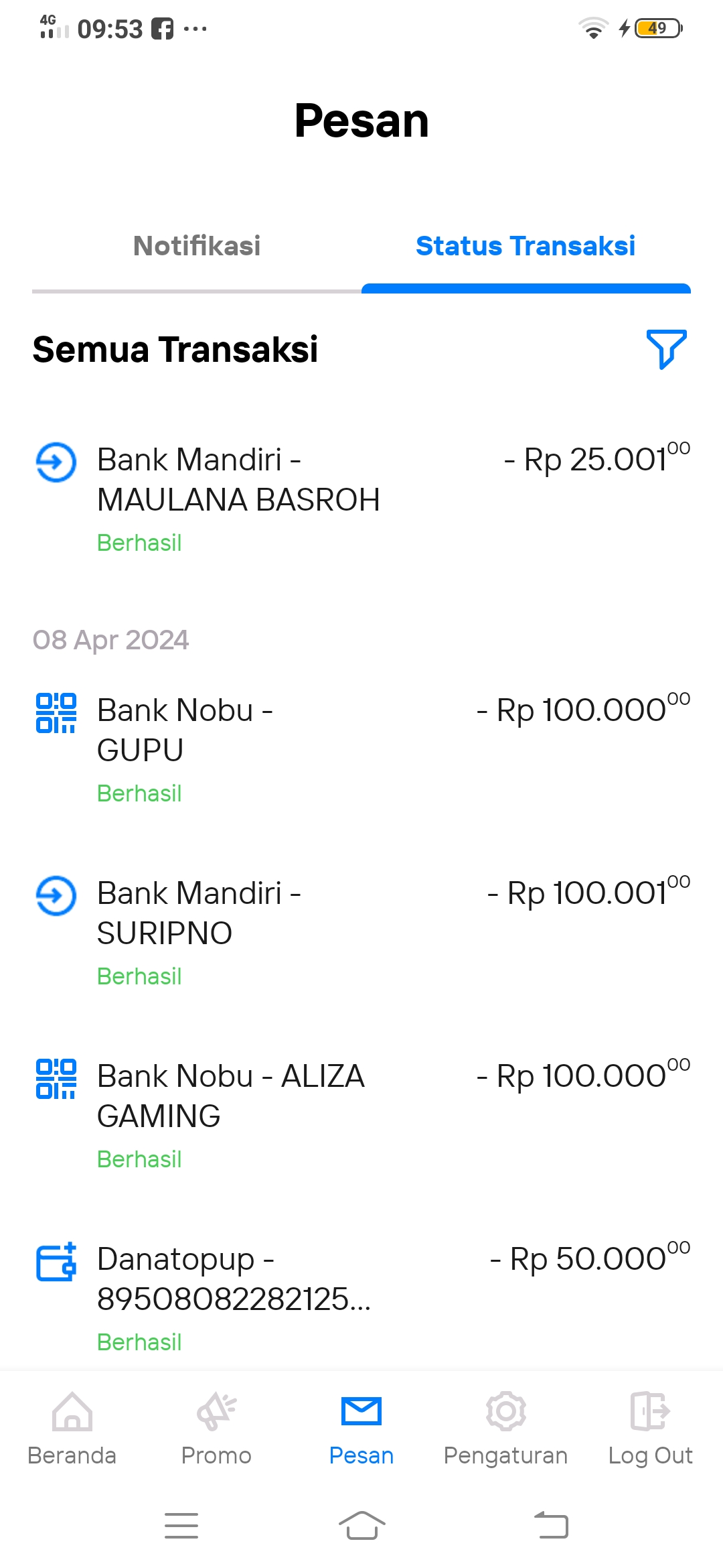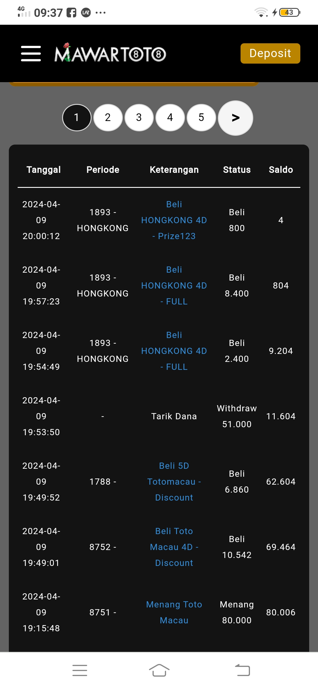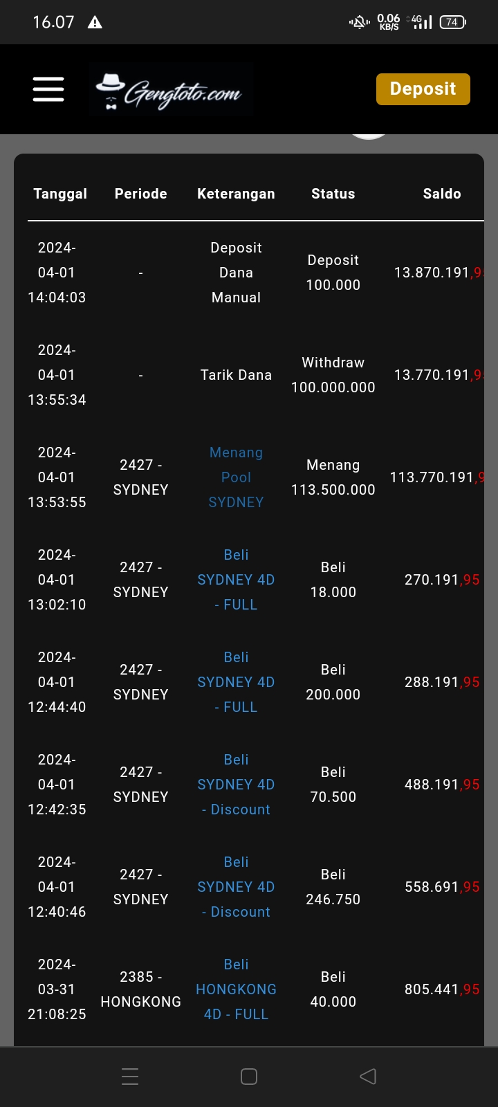 Saya deposit tgl 6 April 2024