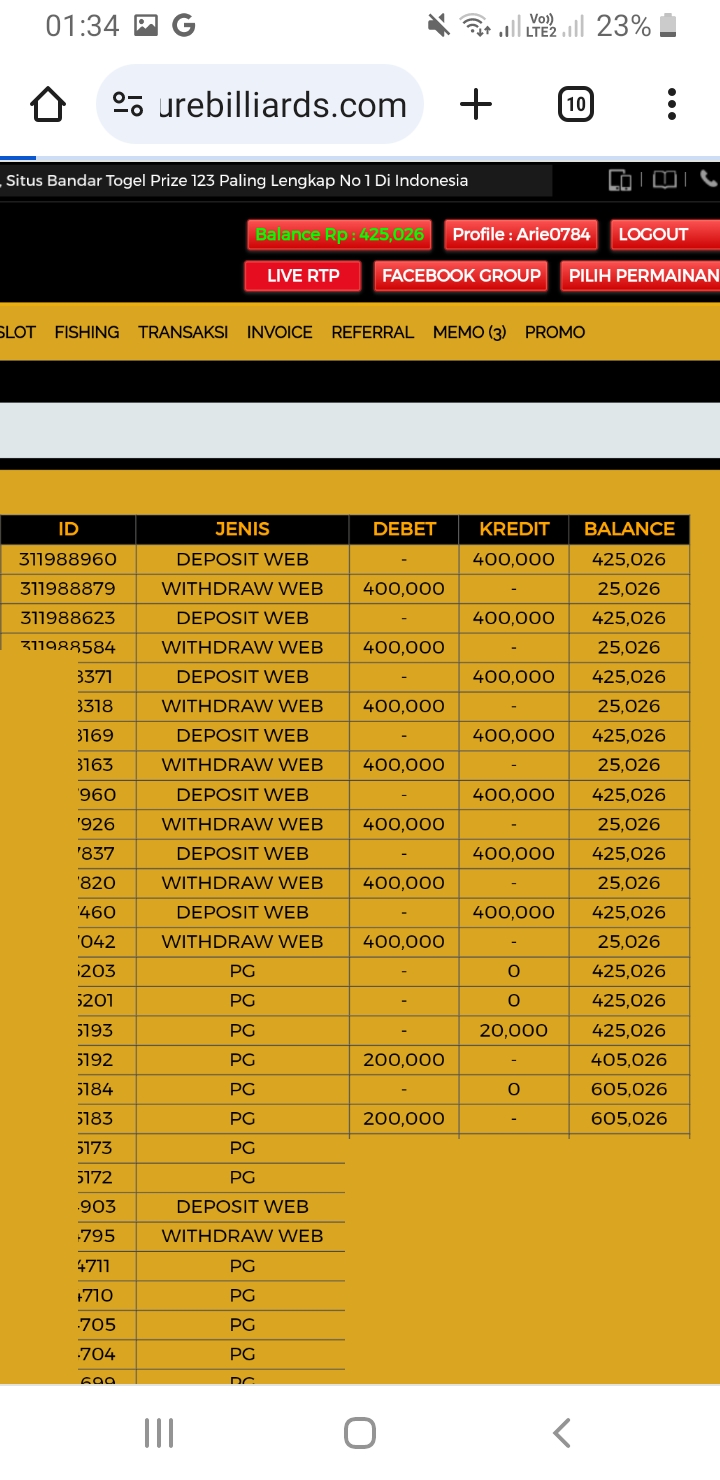 Laporan terjadi pada Udin Togel, saya deposit 300.383 kemudian saya mainkan di slot PG dan menang kemudian eror game PG saldo jadi tidak konsisten, saya takut lalu lakukan withdraw. Kemudian sistem maentance, setelah maentance saldo saya jadi 0. Kalau direject kenapa saldo deposit saya jadi hilang juga, berarti tindakan Udin Togel merugikan pelanggan.