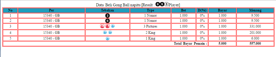 untuk GONGBALL periode 15340 seperti yg di gambar , member napitu pasang 2 , 6 , 2QUEEN KING , 2KING dan 1king