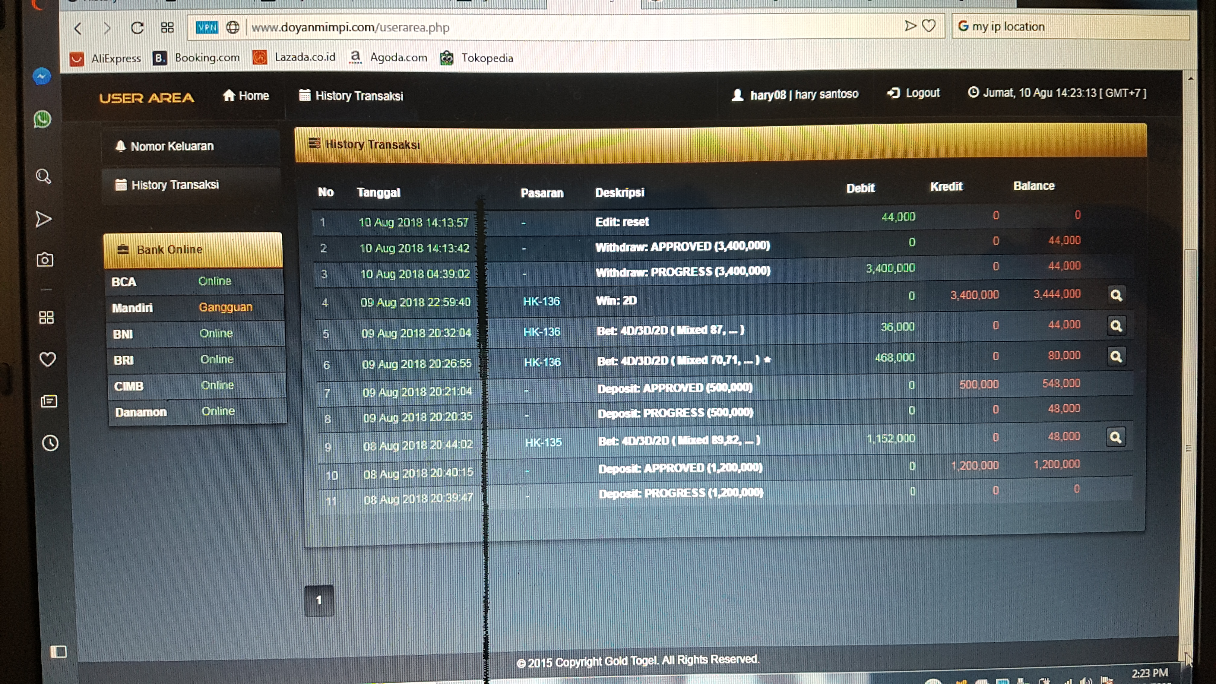 2. Kronologinya, sy baru bisa deposit pukul 21.45 karna bank sdg ada gangguan jaringan. Lalu sy chat ke admin untuk segera dproses. Deposit mereka approve dan sy langsung betting angka. Nomor bettingan sy keluar. Pukul 23.05 sy log-in ke account tp tdk bisa. Jam 23.12 sy chat admin, tp katanya user-id sy sdh di bend.alasannya deposit sy belum msk ke rek BO sogo4d. tp sy sdh minta deposit sy sgr d proses.