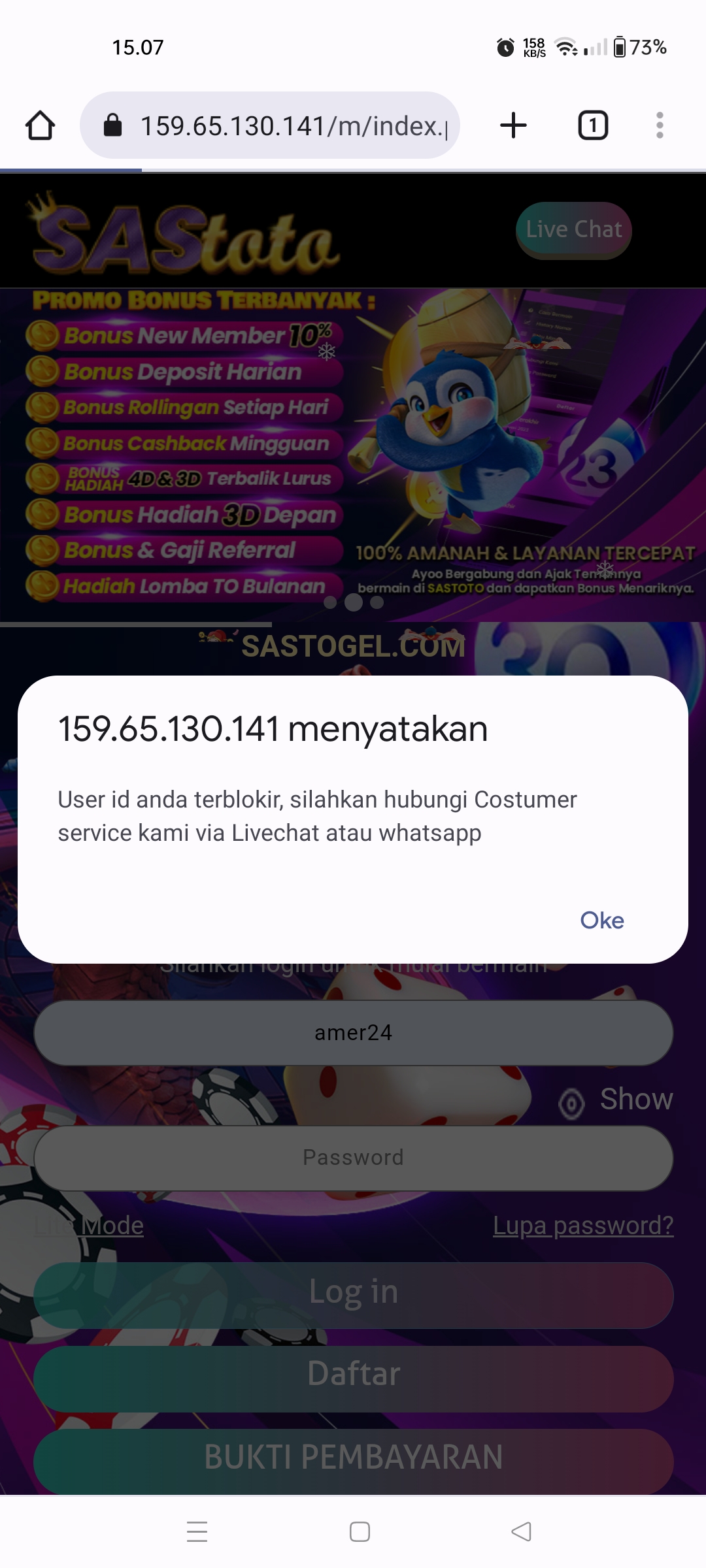 SASTOTO blokir akun menang togel sydney di hubungi via live chat langsung di keluarin, di hubungi via WhatsApp langsung di blokir. Hati2 yang main di situs SASTOTO !!!