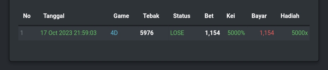 Kalo bet BB HK gini apa tetap LOSE? Mohon infonya. Trims.