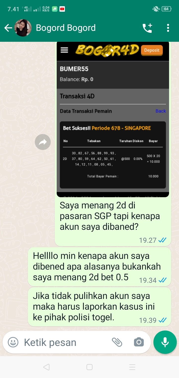 26. Kemarin saya main togel 2d di bo bogor4d, setelah nomor keluar (56) saya masuk login tapi akun saya id bumer55 udah slah pasword.., saya hubungi admin ic chat mereka langsung nonaktifkan ic chat nya..