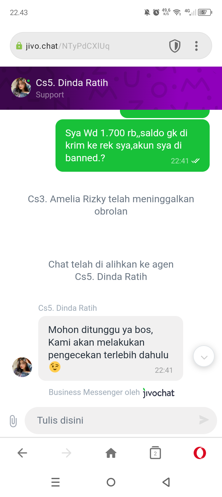 2. Sya jp dan saldo sya Wd 1700 di game aproved tpi gk masuk ke rek sya trus game sya di banned,,adminnya di ganti trus waktu sya chat.?