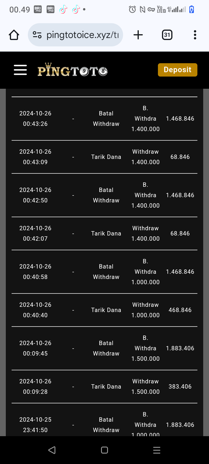 39. Bos saya deposit situs gengtoto tapi saldo Ndak tambah bos