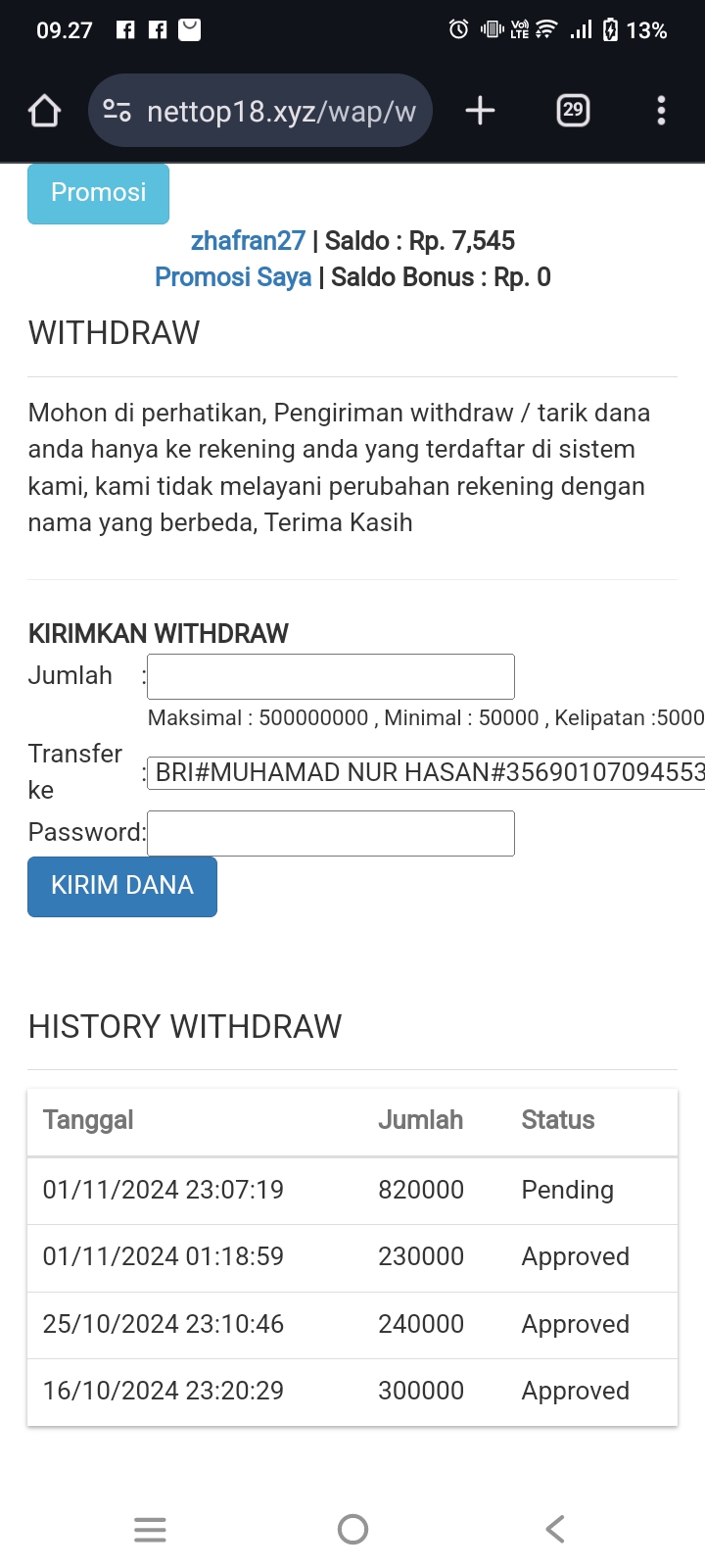 1. alasan tidak bisa wd apoa sob?kasih bukti transaksi yang lengkap,jangan hanya menyalahkan BO,apakah sobat sudah bermain dengan benar,dan tidak melanggar aturan?