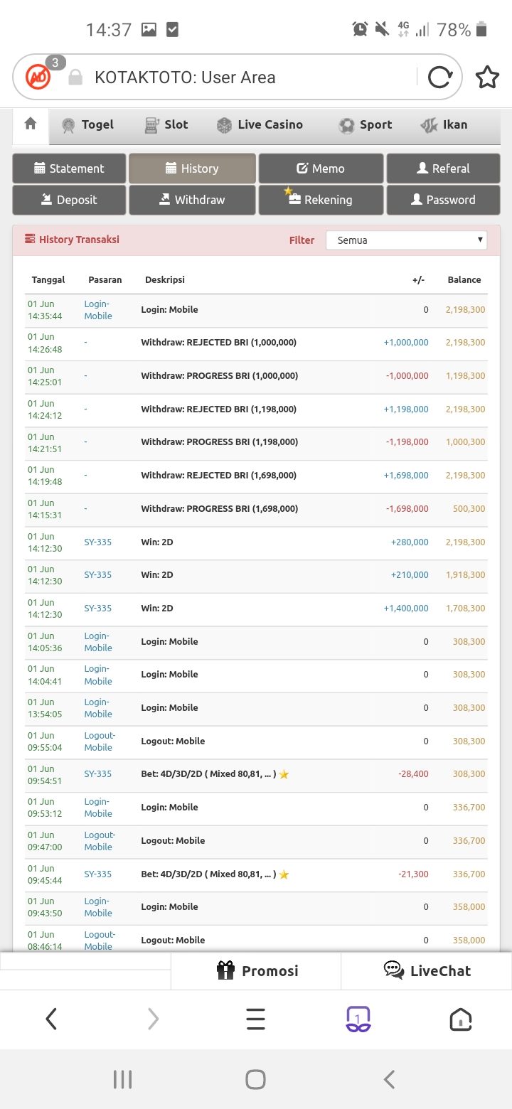 1. ini bosku aku gak ambil bonus witdroh susa kotaktoto berharap berhati member lain gak ketipu kotaktoto