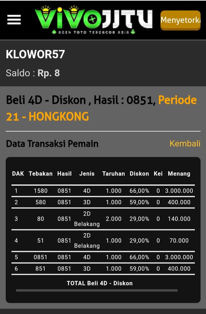 Bo : ( vivoJitu) bo maling penipu tolong di proses, udah 2x JP gak di bayar, terakhir tadi mlm pasaran Hongkong JP 432d x1000, malah di blokir