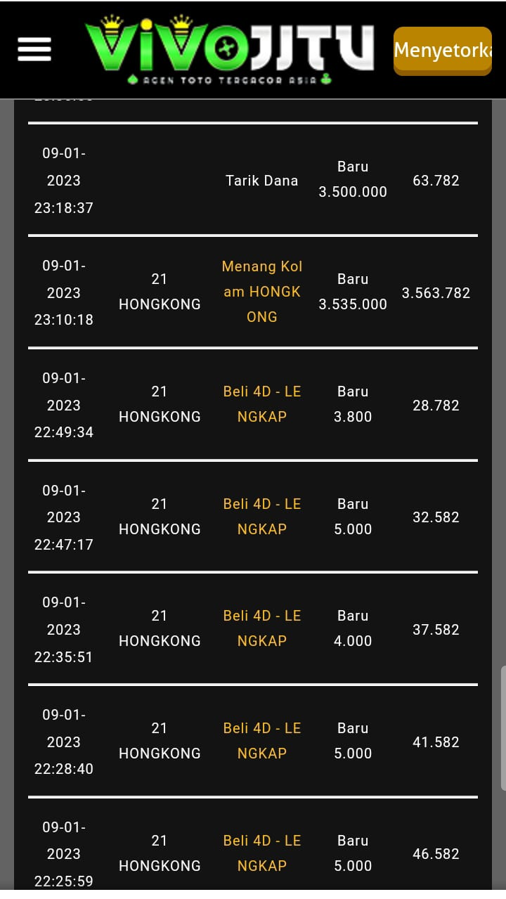 23. BO (vivoJitu) bo maling / Rampok, JP 432d x1000 Hongkong semalem gak di bayar lunas, mlh di ganti saldo awal 60k tolong di proses udah banyak korban