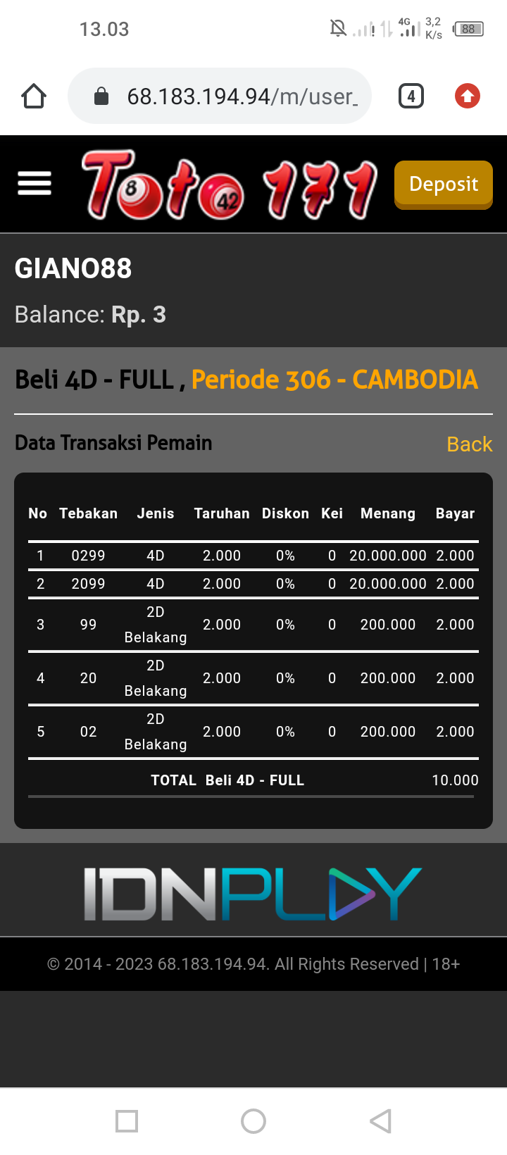 Saat bett tidak ada penolakan oleh system, namun setelah result pasaran & kena senilai 19 jt-an, baru ada pemberitahuan bahwa pasangan Abnormal, tidak bisa WD dan akun di blok.