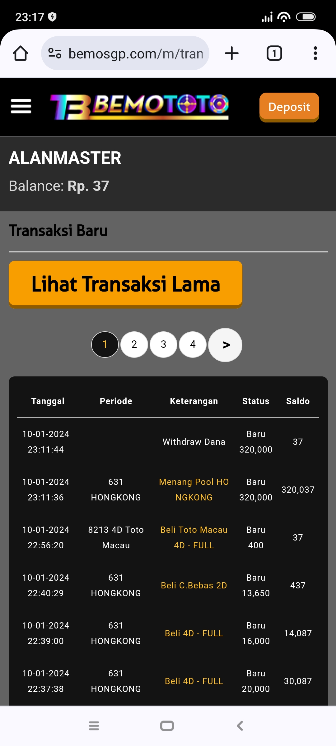37. Saya deposit d kingdomtoto grup khusus nya bo 4d gak d proses bos