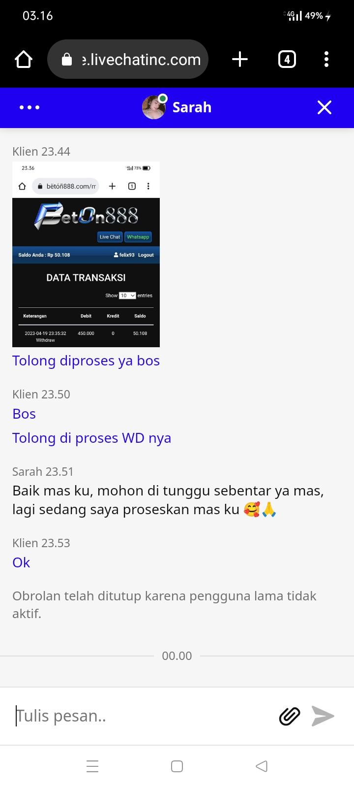 25. Bos tolong di proses Bo beton888,Wd Akun di blokir,alesan nya saya spam 5x