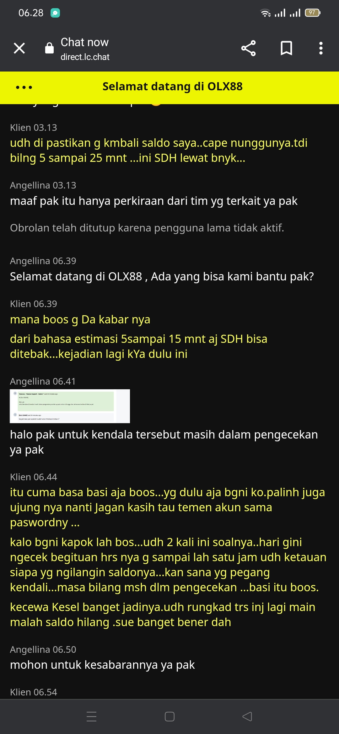 28. saya kmrn main di olx88 lagi main jam 2malam tiba” saldo hilang bgtu live chat ktya suruh nunggu 5-15mnitvsamoai skrg g ada kabarnya