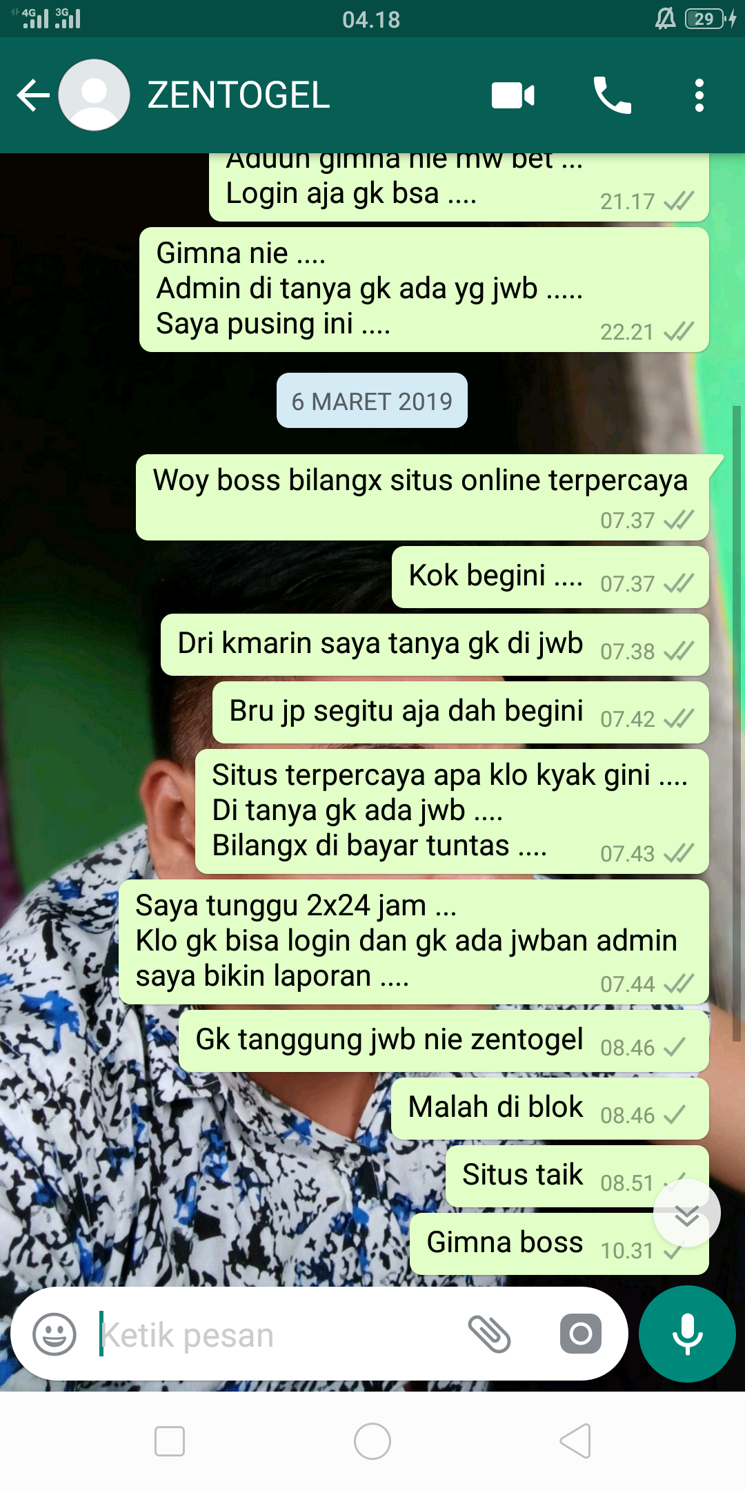 2. Kau bandar nya ya? Kalau kau bilang aman, aku punya semua bukti nya dia penipu, kalau kau emang pemain di situ, hati2 akun zentogel penipu!!!!!!