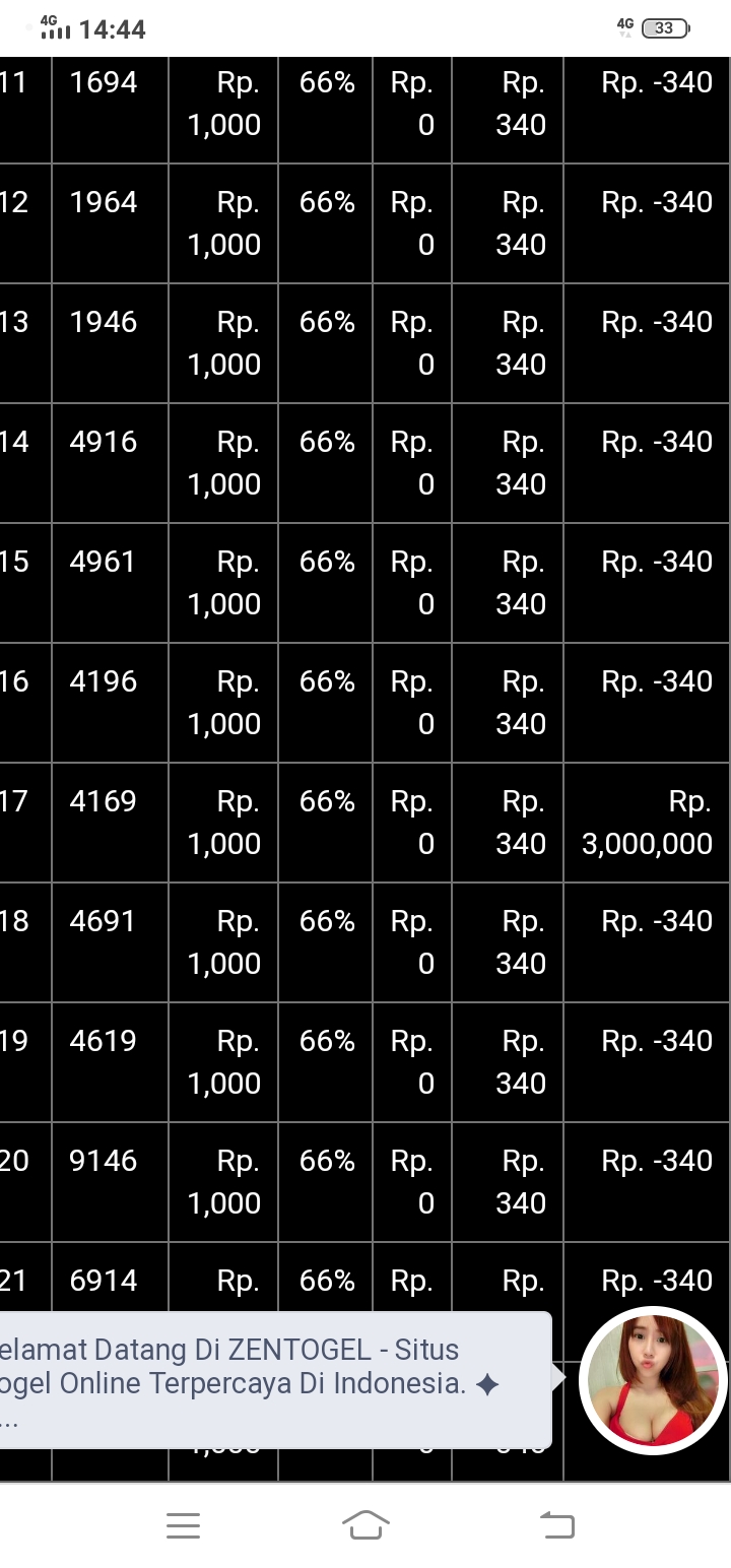 23. Saya user di zentogel.net username winwin888 hari ini sy beli bb campuran 1424 x10rb di togel sdyney buka 2144 dapat 4angka/3angka/2angka yg dibayar hanya yg 2 angka 700rb sedangkan yg 3angka/4angka tidak dibayar karna di invoice dimanipulasi data bukti nya ada sy screenahot dasar zentogel.net situs togel online penipu/abal” hati” ya sy salah satu korban terbaru yg ngak dibayar sebesar 34jt yg dibayar hanya 700rb